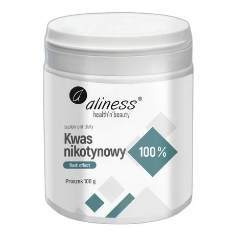 ALINESS Kwas NIKOTYNOWY NIACYNA Witamina B3 FLUSH 100g Energia Metabolizm — dostępny w naszym sklepie. Suplement diety.