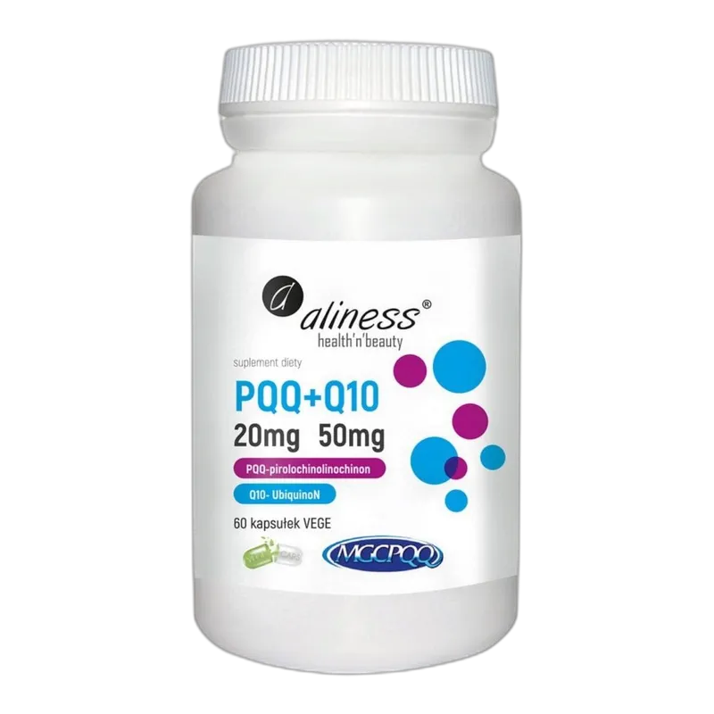 Aliness PQQ 20 mg + KOENZYM Q10 50 mg SERCE MÓZG ENERGIA PAMIĘĆ – 60 KAPS — dostępny w naszym sklepie. Suplement diety.