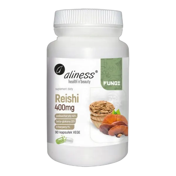 Aliness REISHI 400 mg WYSOKA STANDARYZAJCA synteza CYTOKIN ODPORNOŚĆ STRES — dostępny w naszym sklepie. Suplement diety.